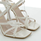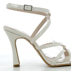 Eleganti sandali con tacco da 9 cm, caratterizzati da una finitura vernice panna che dona un tocco di luce e raffinatezza. Realizzati con esterno in similpelle e interno in pelle, garantiscono comfort e durata. Made in Italy, unisce stile e qualità artigianale per valorizzare ogni tuo passo con classe e sicurezza. Perfetti per occasioni speciali o per aggiungere un dettaglio sofisticato al tuo look quotidiano.