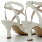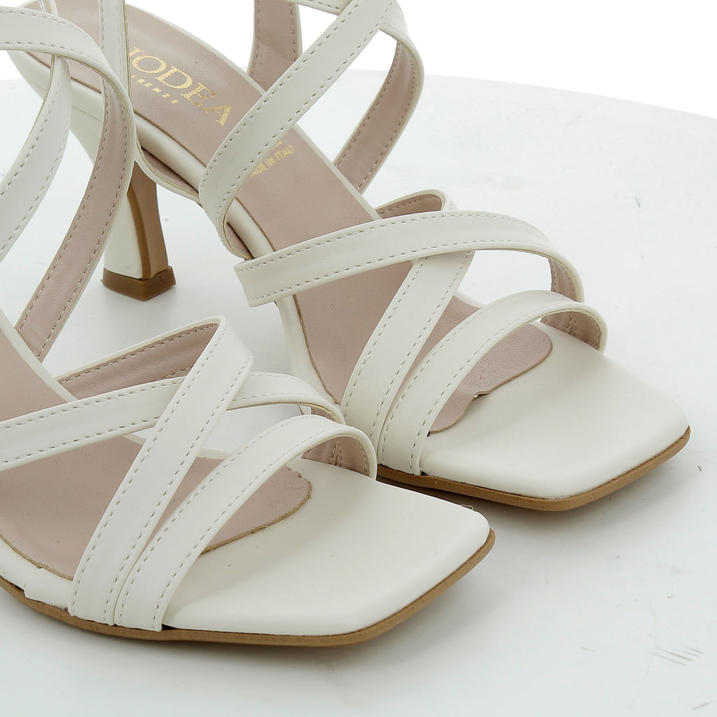 Questi sandali con tacco da 7 cm uniscono eleganza e comfort grazie alla combinazione di pelle e similpelle di alta qualità, color panna, rigorosamente Made in Italy. Il fondo in thunit garantisce leggerezza e stabilità, rendendoli perfetti per accompagnarti con stile in ogni occasione. Scegli la raffinatezza e la praticità di un design pensato per valorizzare ogni passo.