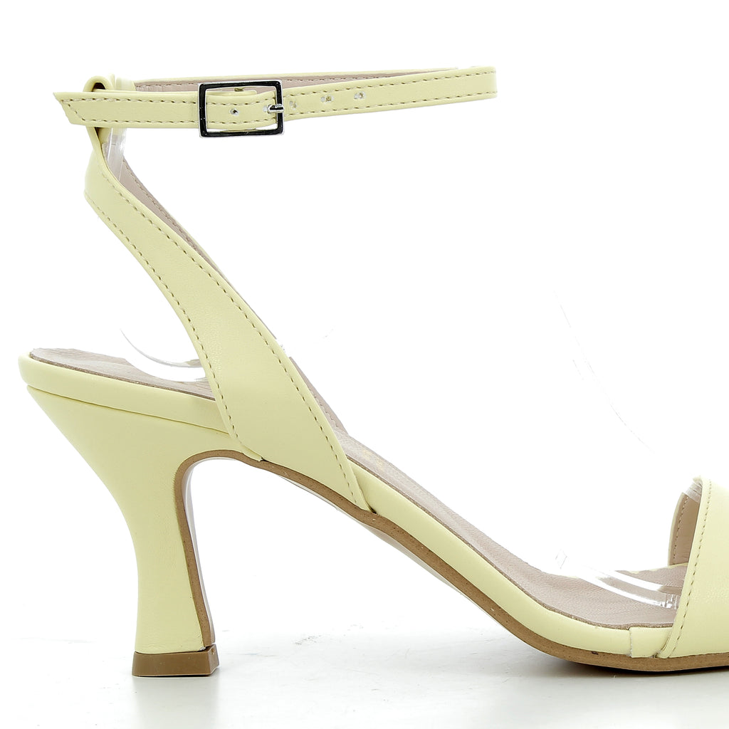 Questi sandali con tacco da 7 cm combinano pelle e similpelle di alta qualità, garantendo comfort e durata. Realizzati in Italia, il loro elegante colore giallo si adatta perfettamente a look sofisticati, offrendo un tocco di classe e femminilità in ogni occasione.
