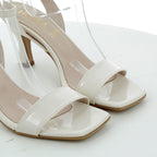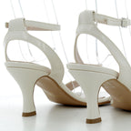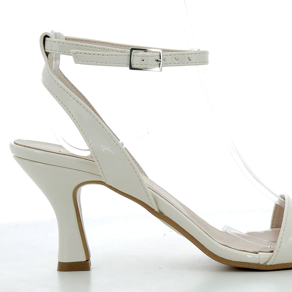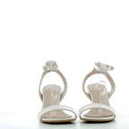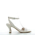 Questi sandali con tacco da 7 cm combinano pelle e similpelle di alta qualità, garantendo comfort e durata. Realizzati in Italia, il loro elegante colore panna si adatta perfettamente a look sofisticati, offrendo un tocco di classe e femminilità in ogni occasione.